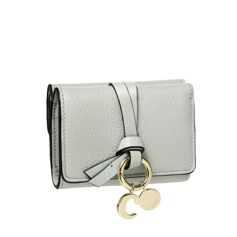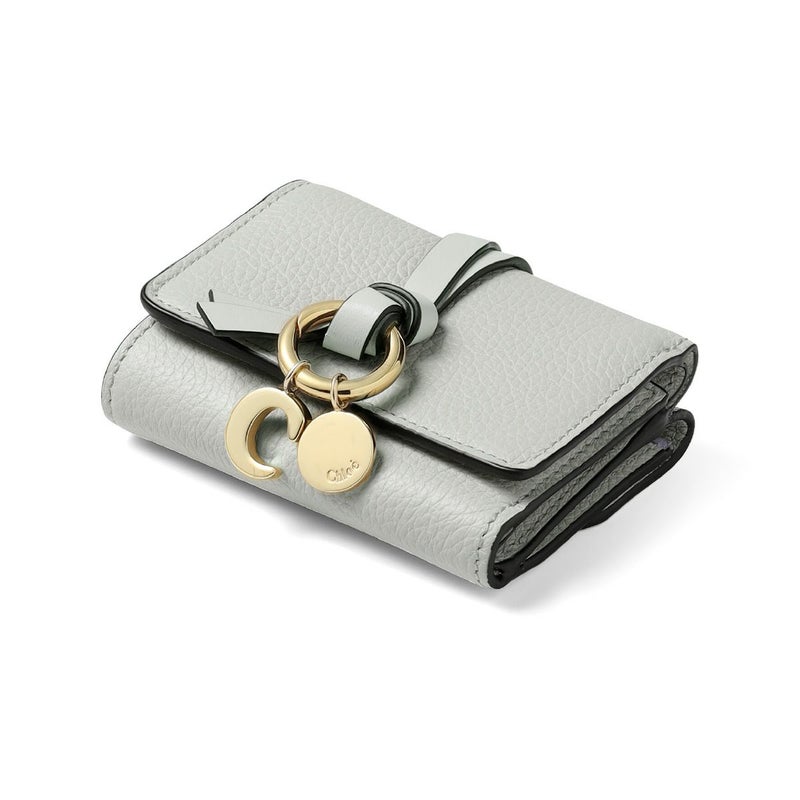 フラップ部分の結び目に飾られた、揺れるロゴ入りのゴールドチャームがラグジュアリーさを漂わせる三つ折り財布ミニ「ALPHABET(アルファベット)」★