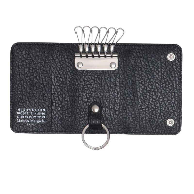 お馴染みのホワイトステッチが、オシャレなアクセントになったキーケース★本体は味わい深いシボ加工が施されたカーフスキンで仕上げられ、しっかりと丈夫な佇まいが高級感を演出。内側には6連フックが備えられているので色々な鍵をひとまとめにでき、さらに大きめのキーリングが1つ配置された実用的な作り◎シンプルなシルエットとベーシックなブラックカラーで使いやすく、プレゼントとしてもピッタリのアイテム♪