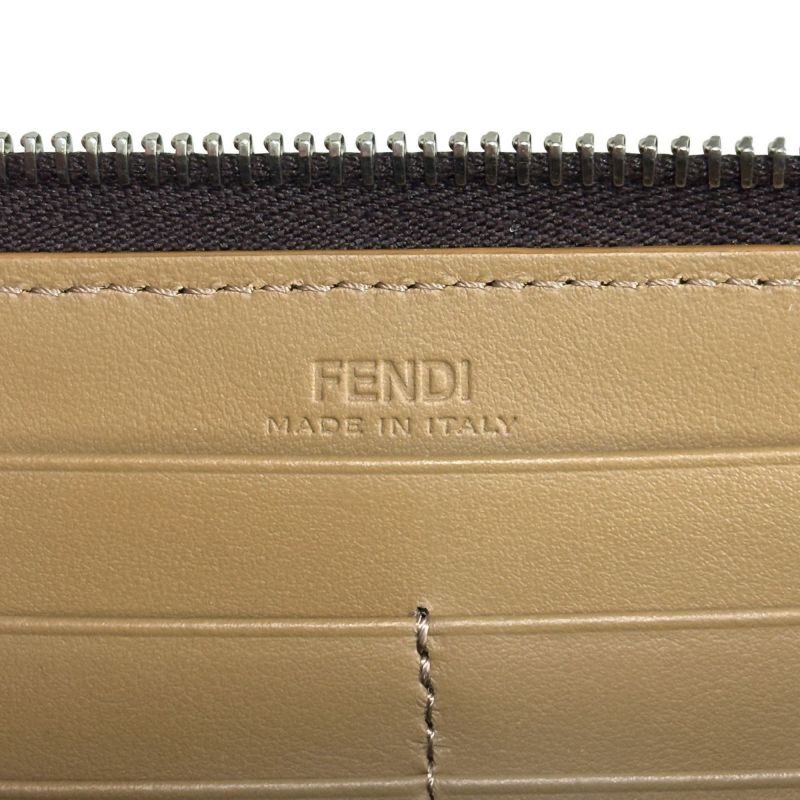 ブラウンのFFロゴにブラックの斜めライン、ベージュを組み合わせた個性溢れるラウンドファスナー長財布★FF柄部分はファブリック素材、無地部分はキレイな艶を放つカーフスキンで仕上げられた本体は、柔らかい質感ながらも丈夫で使いやすいデザイン。内側はファスナー式の小銭入れやカード入れ、紙幣入れやスリットポケットが配置された、実用的なインテリア◎フェンディならではの遊び心を効かせたルックスで、周りと差を付けてくれること間違いなしのオシャレアイテム♪