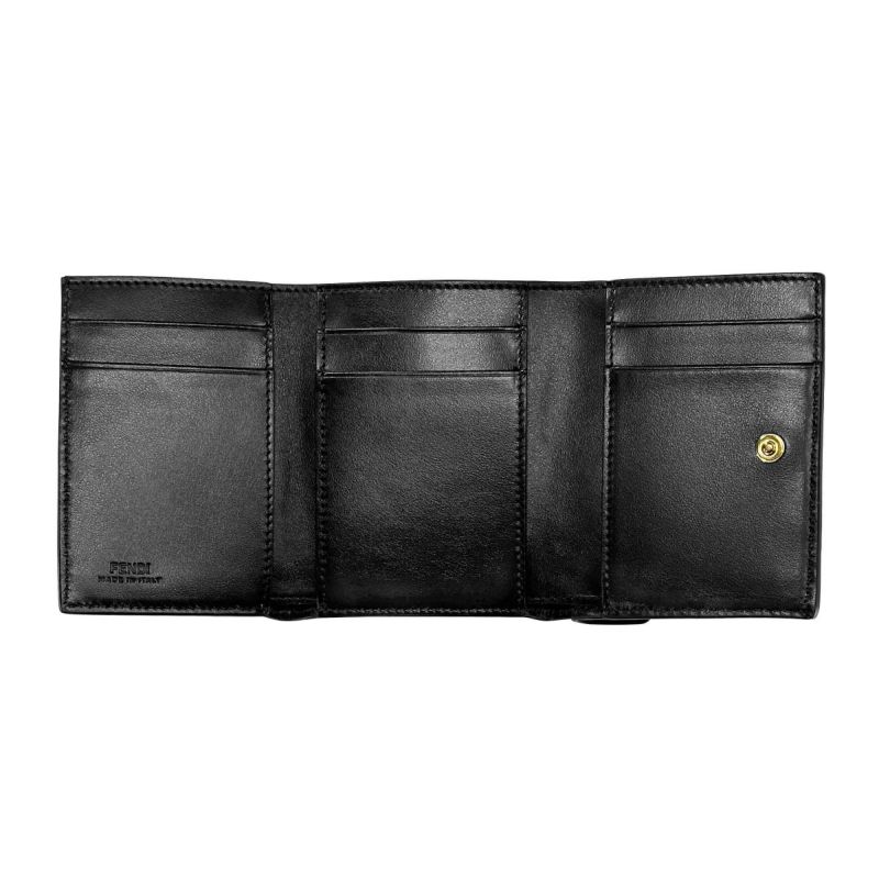 留め具にゴールドメタルで飾られた斜めのFFモチーフが、目を惹くアクセントになった三つ折り財布「FF DIAMOND(FFダイヤモンド)」★本体は上質なカーフスキンで仕上げられており、さらりとした手触りの良さやキレイな艶が、高級感漂う佇まい。内側はカード入れや紙幣入れ、スリットポケットが備えられ、外側にはスナップ式の小銭入れともう一つポケットを配置した、コンパクトながらも機能性抜群の作り◎大人の女性を演出してくれる上品でエレガントなデザインは、周りと差が付くこと間違いなしのオシャレアイテム♪
