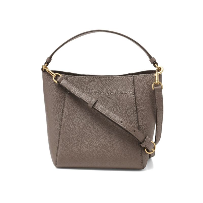 立体的に飾られたダブルTロゴや手縫いのステッチが、目を惹くアクセントになったショルダー付きバケットバッグスモール「MCGRAW(マックグロー)」★本体は細かなシボ加工が施されたペブルドレザーで仕上げられ、手触りの良い柔らかな質感やキレイな艶が魅力的。内側は二つ折り財布やスマートフォン、小物類を収納できるスペースに、ポケットが2つ備えられた実用的な作り◎また、取り外しと長さ調節が可能のショルダー付き!さらに、内側のフックでフォルムを変えられる仕様!ワンハンドルのスッキリとしたシルエットやコンパクトなサイズ感が、女性らしさを演出してくれるアイテム♪