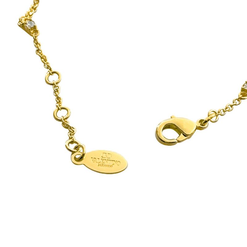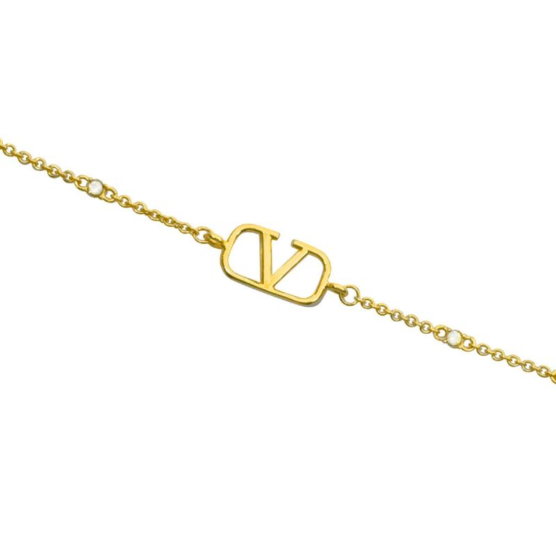 Vロゴとクリスタルがあしらわれた、高級感溢れるブレスレット★本体はエレガントさが漂うゴールドと、キレイな輝きを放つスワロフスキーのクリスタルで作られ、上品さを演出。また、長さ調節できるチェーンのエンドパーツにもロゴ入りの丸いプレートがあしらわれ、細部までこだわり抜かれたデザイン◎控えめでさり気ない存在感は様々なスタイルに取り入れやすく、贈り物にも喜ばれること間違いなしのアイテム♪
