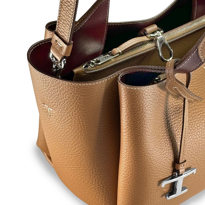 フロントに型押しされたロゴや前後にあしらわれたT字のステッチが、ワンポイントになったショルダー付きハンドバッグミニ「T TIMELESS(ティー タイムレス)」★