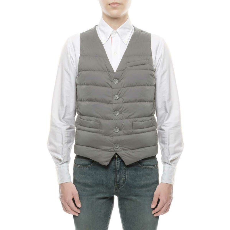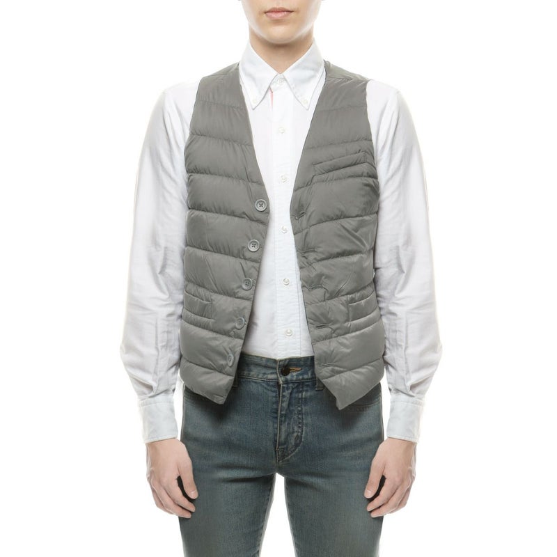落ち着いたグレーカラーが、大人の男性らしさを醸し出すダウンベスト★マットな風合いのボディは、ナイロンにポリウレタンでコーティングが施されたヌアージュナイロンで作られ、ふんわりとした柔らかさと、軽やかな着心地が魅力的。また、中綿には上質なグースダウンとフェザーを使用しており、薄手でありながらも暖かさを実感できる仕上がり◎背面には、ロゴ刻印入りの小さなメタルプレートを配置!メンズの定番モデルを集めたコレクションの「LEGEND」シリーズで、スーツのインナーダウンにも活躍する一枚♪
