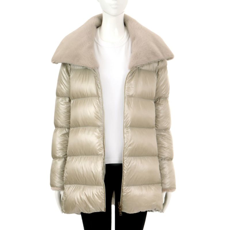 襟と袖口にたっぷりとあしらわれたエコファーが、エレガントさを漂わせるファー付きダウンコート★