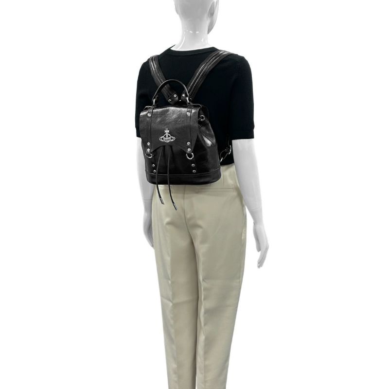 フロントに飾られたヴィヴィアンを象徴するオーブや、所々にあしらわれた丸いスタッズがインパクト抜群のバックパックスモール「MAX(マックス)」★本体は滑らかな手触りの上質なレザーで仕上げられ、キレイな艶が高級感溢れる表情を演出。内側は長財布や携帯電話、小物類が入るスペースに、便利なファスナーポケットが1つ備えられた実用的な作り◎また、ショルダーは長さ調節ができる仕様!シックなブラックとシルバーメタルの組み合わせがクールさを醸し出し、コーディネートを格上げするアイテム♪