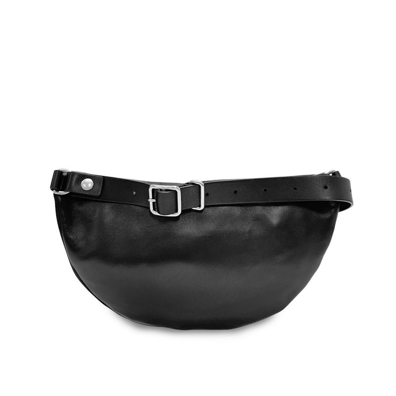 正面の小さな型押しロゴが、さり気ないアクセントになったウエストバッグ★柔らかな質感の本体はナッパレザーで仕上げられており、上品な艶や滑らかな手触りが高級感漂う魅力的な佇まい。内側は長財布や携帯電話などが収納できるスペースに、カードポケットが1つ備えられた、コンパクトながらも機能的な作り◎また、ベルトは取り外しと長さ調節が可能で、腰に巻いたり肩掛けや斜め掛けにして本体を前や後ろにしたりできる仕様!両手が自由になり身動きしやすく、デイリーから旅行時まで幅広く活躍してくれること間違いなしのアイテム♪