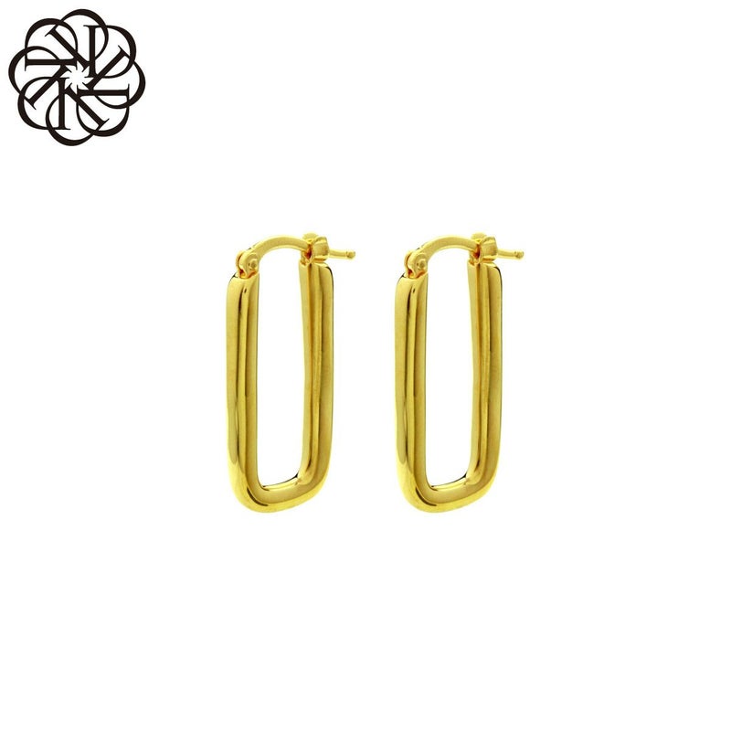 丸みを帯びたすっきりとしたスクエアフォルムが、個性を感じさせるピアス★本体はブラスで仕上げられており、ゴールドがラグジュアリーさを漂わせる魅力的な表情を演出。また、キャッチがないタイプで簡単に付け外しが可能◎シンプルながらも存在感のある太めフープが顔周りに華やかさをプラスし、女性へのプレゼントとしても喜ばれること間違いなしのアイテム♪