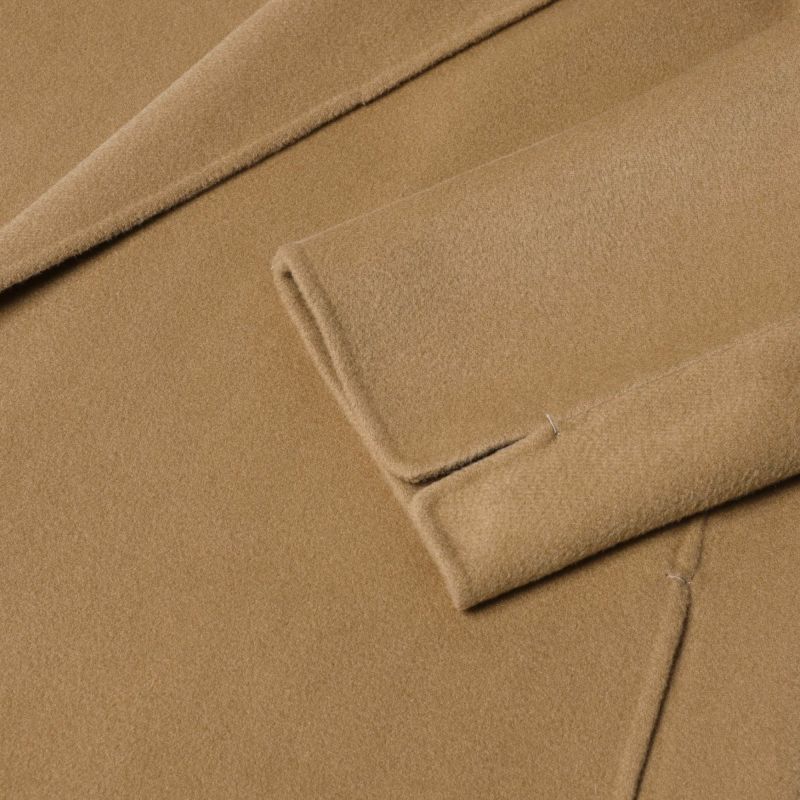 本体は暖かみのあるピュアヴァージンウールで作られ、二枚の生地を丁寧に重ねて一重に仕立てているので裏地がなく、柔らかく優しい肌触りと軽やかな着心地が魅力的。