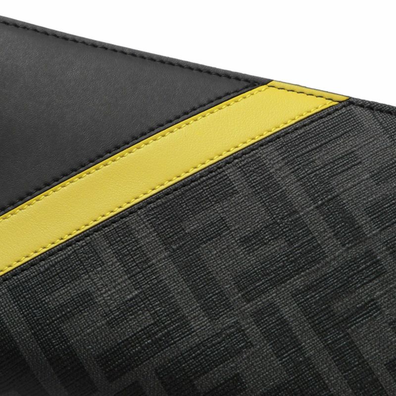 グレーのFFロゴにイエローの斜めライン、ブラックを組み合わせた個性溢れるラウンドファスナー長財布★FF柄部分はコーティングが施された混合コットン素材、無地部分はキレイな艶を放つカーフスキンで仕上げられた本体は、柔らかい質感ながらも丈夫で使いやすいデザイン。内側はファスナー式の小銭入れやカード入れ、紙幣入れやスリットポケットが配置された、実用的なインテリア◎フェンディならではの遊び心を効かせたルックスで、周りと差を付けてくれること間違いなしのオシャレアイテム♪