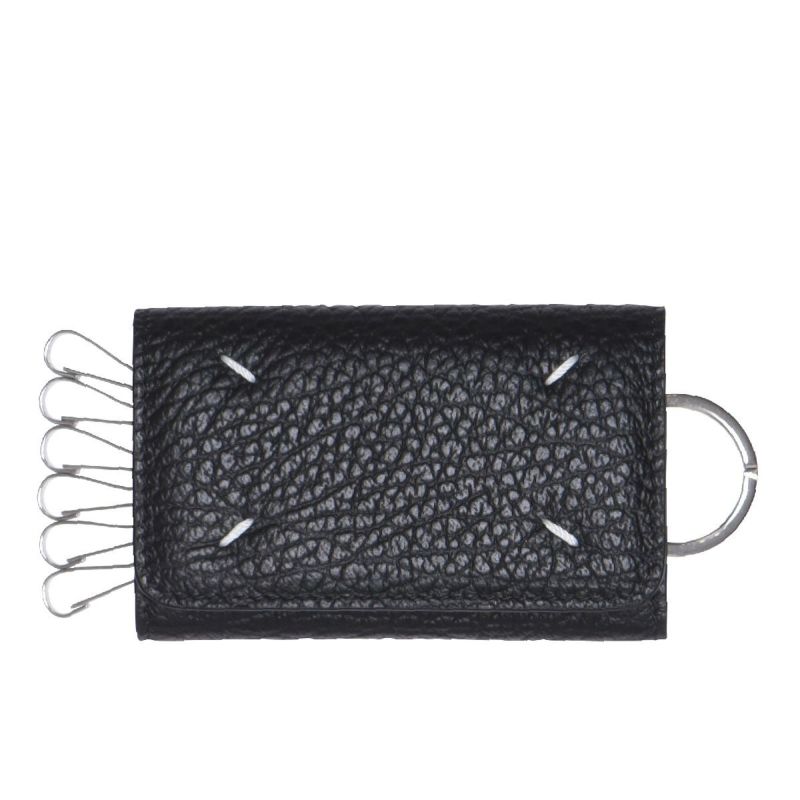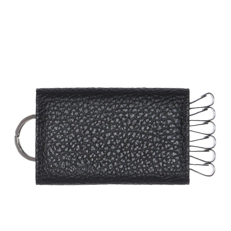 お馴染みのホワイトステッチが、オシャレなアクセントになったキーケース★本体は味わい深いシボ加工が施されたカーフスキンで仕上げられ、しっかりと丈夫な佇まいが高級感を演出。内側には6連フックが備えられているので色々な鍵をひとまとめにでき、さらに大きめのキーリングが1つ配置された実用的な作り◎シンプルなシルエットとベーシックなブラックカラーで使いやすく、プレゼントとしてもピッタリのアイテム♪