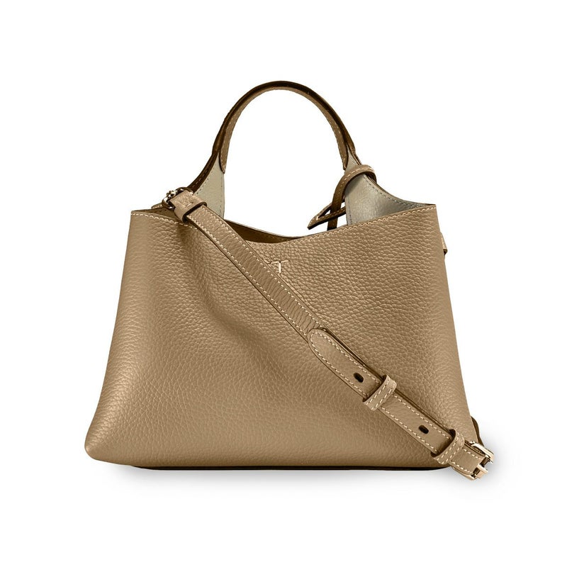 フロントに型押しされたロゴや前後にあしらわれたT字のステッチが、ワンポイントになったショルダー付きハンドバッグマイクロ「T TIMELESS(ティー タイムレス)」★