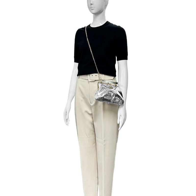 本体は大胆なシワ加工が施された、クリンクルメタリックレザーで仕上げられ、上品な艶や滑らかな手触りが高級感溢れる表情を演出。