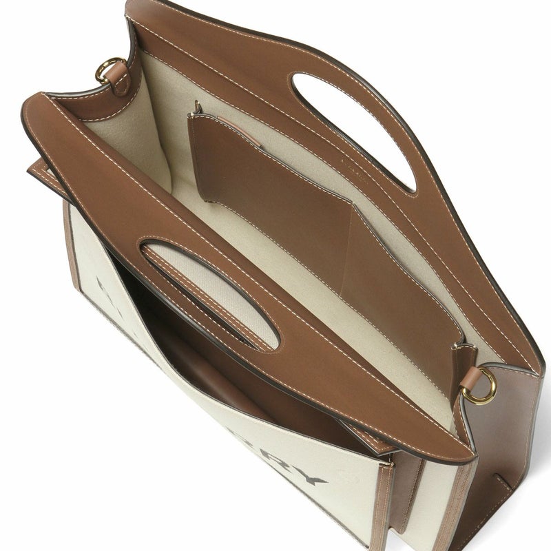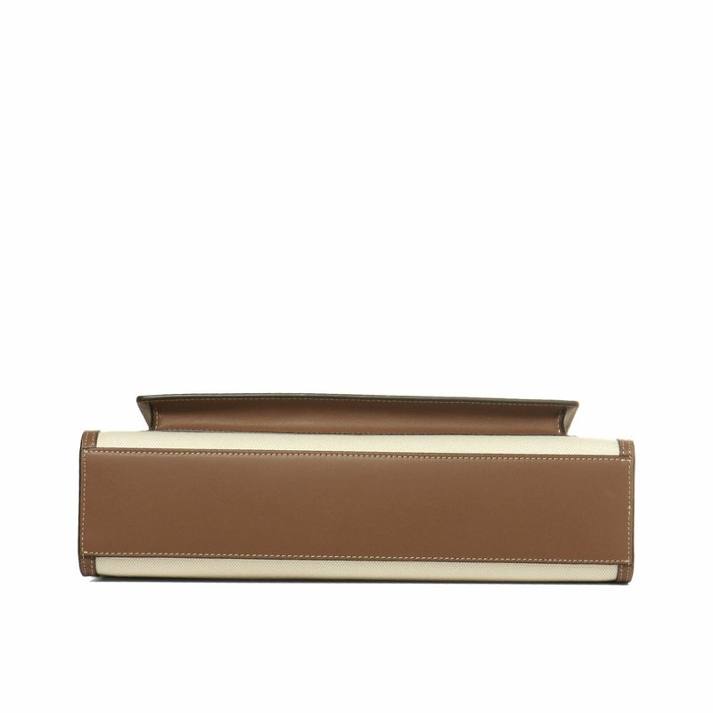 ボディは丈夫なコットンキャンバス素材で仕上げられ、縁取りやハンドル、ショルダーなどにはカーフスキンが施された、カジュアルながらも高級感を醸し出すデザイン。