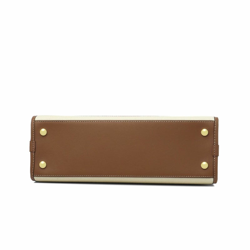 フロントにプリントされたロゴが、オシャレなアクセントになったショルダー付きハンドバッグスモール★本体は丈夫なコットンキャンバスで仕上げられ、縁取りやハンドル、ショルダーの一部にはブラウンのカーフスキンが施された、カジュアルながらも高級感漂うデザイン。内側は長財布や手帳などが収納できるスペースに、便利なポケットが2つ備えられた、使い勝手の良いインテリア◎また、外側の正面にはマグネット式のポケットを配置!さらに、取り外しと長さ調節が可能のショルダー付き!キチンと感のあるルックスが大人の女性らしい雰囲気を演出し、コーディネートを一気に格上げしてくれる逸品♪