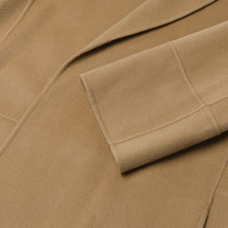本体は暖かみのあるピュアヴァージンウールで作られ、二枚の生地を丁寧に重ねて一重に仕立てているので裏地がなく、柔らかく優しい肌触りと軽やかな着心地が魅力的。
