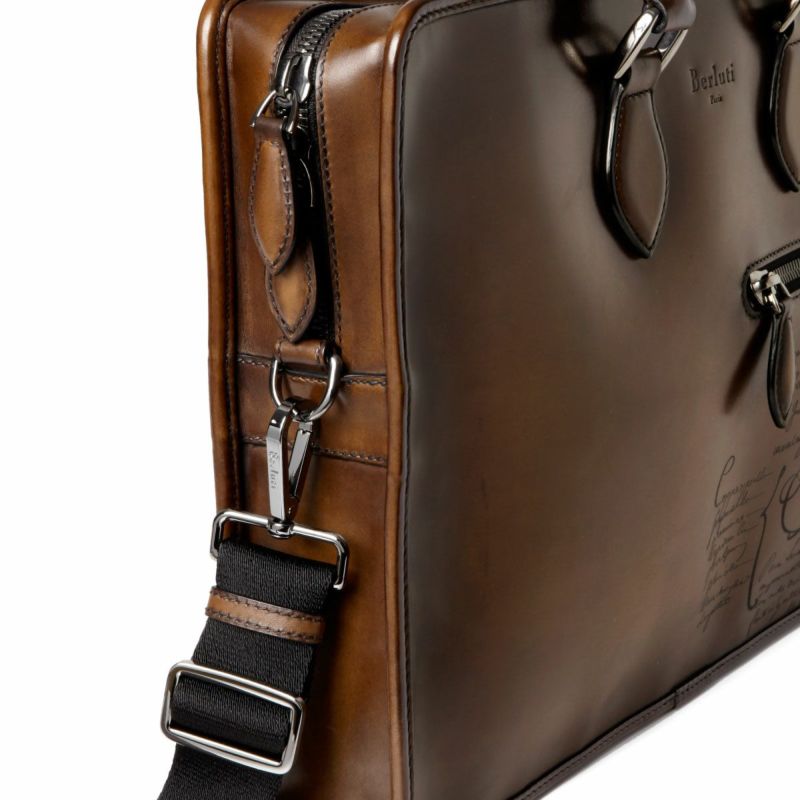 ボディはベルルッティ独自の鞣し技術が施されたヴェネチアレザーで仕上げられ、ソフトな質感ながらも丈夫さがあり、しなやかな手触りや美しい艶がエレガントさを演出。