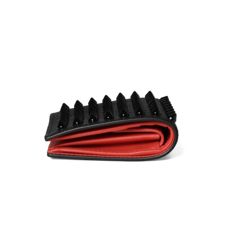 フロントに飾られた光沢を放つブラックカラーのスパイクスタッズが、クールなアクセントになった二つ折り財布「PAROS SPIKES(パロス スパイクス)」★本体は柔らかく優しい質感のカーフスキンで仕上げられており、繊細なシボや上品な艶が高級感溢れる表情を演出。鮮やかなシグネチャーレッドカラーで彩られた内側には、紙幣入れやカード入れ、スリットポケットやホック式の小銭入れが備えられた、コンパクトながらも実用的な作り◎ミニサイズで持ち運びがしやすく、シックなブラックカラーが大人の男性らしいカッコ良さを醸し出すアイテム♪