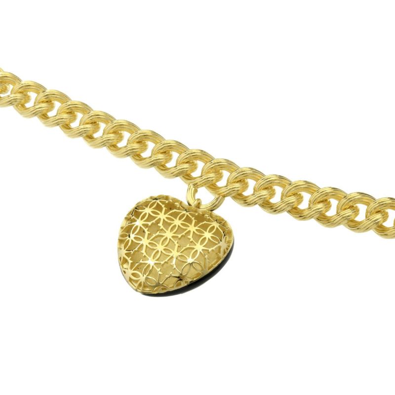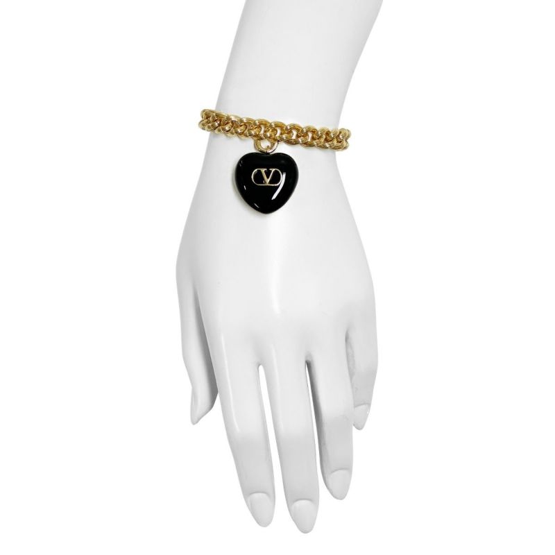 ハート型のエナメルチャームにお馴染みのVロゴが飾られた、可愛らしい印象を放つブレスレット★本体はブラスで仕上げられ、上品な輝きが魅力的。また、長さ調節できるパーツ部分がVロゴになっており、細かな所までこだわりが感じられる手の込んだ作り◎さらに、ハートチャームの裏側には透かし彫りがあしらわれ、遊び心溢れるデザイン!存在感たっぷりで手元に華やかさをプラスし、身に着けるだけでファッションを格上げしてくれるアイテム♪