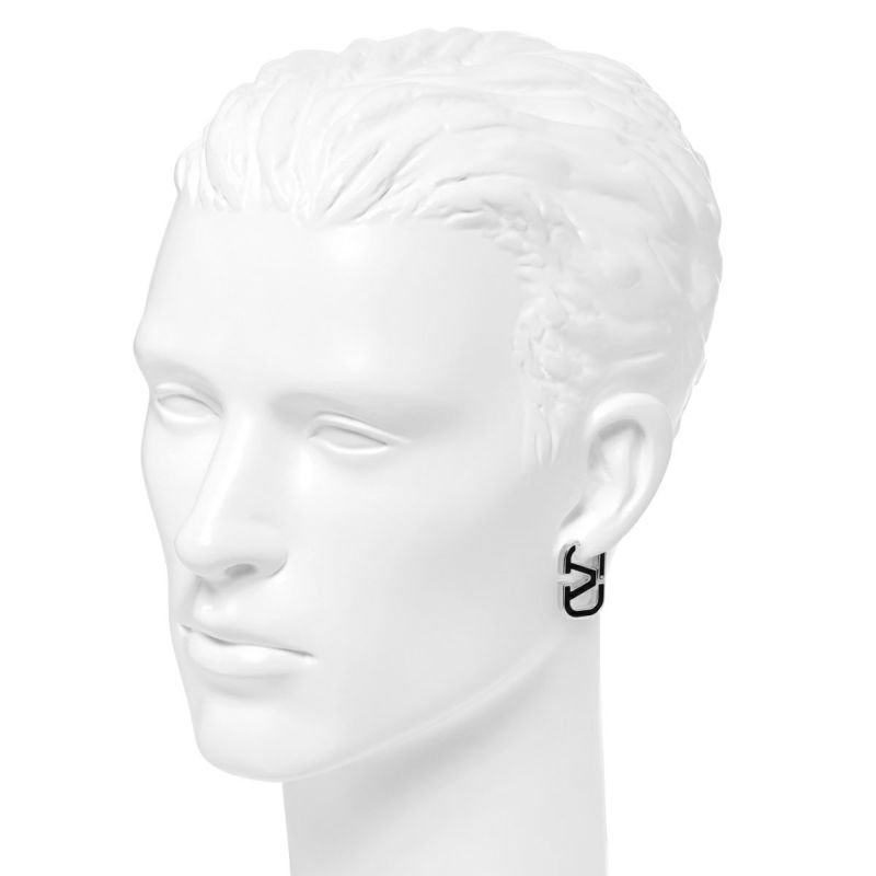 縦に飾られたVロゴが、目を惹くシングルピアス★本体はブラスで仕上げられており、ブラック×シルバーのバイカラーがクールな雰囲気を漂わせる魅力的なデザイン。また、キャッチがないタイプで簡単に付け外しが可能◎ベーシックなカラーとシンプルなシルエットで合わせやすく、プレゼントとしても喜ばれること間違いなしの逸品♪