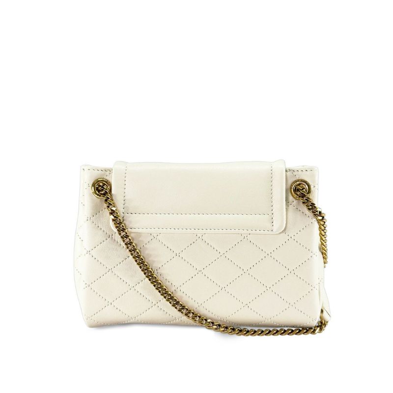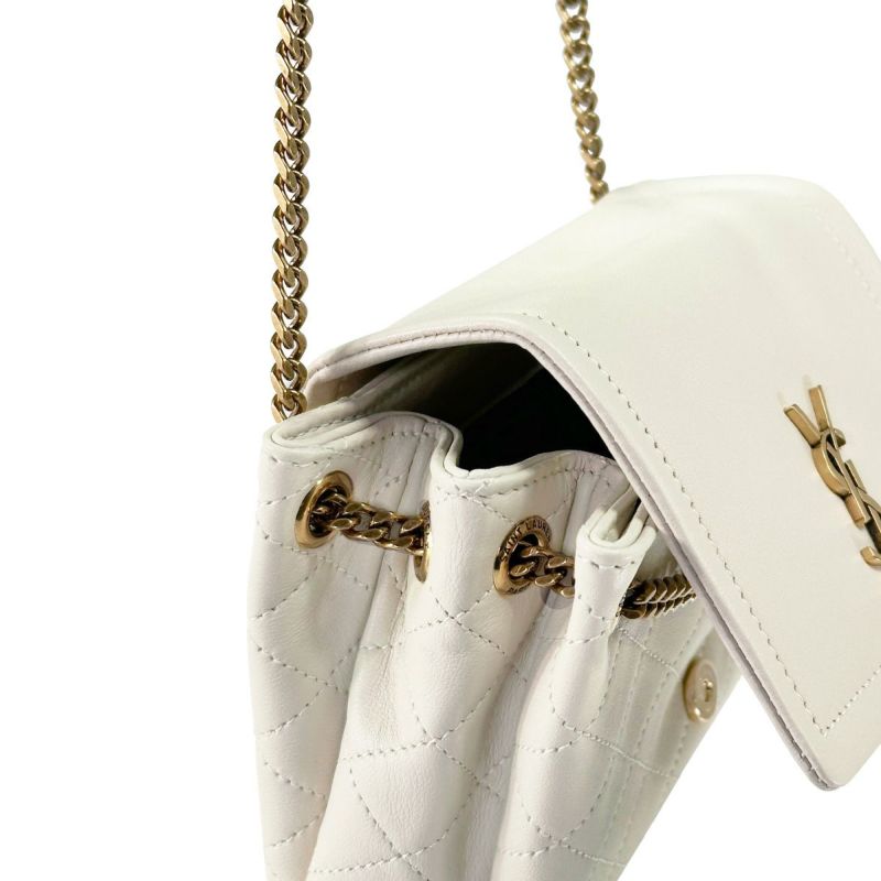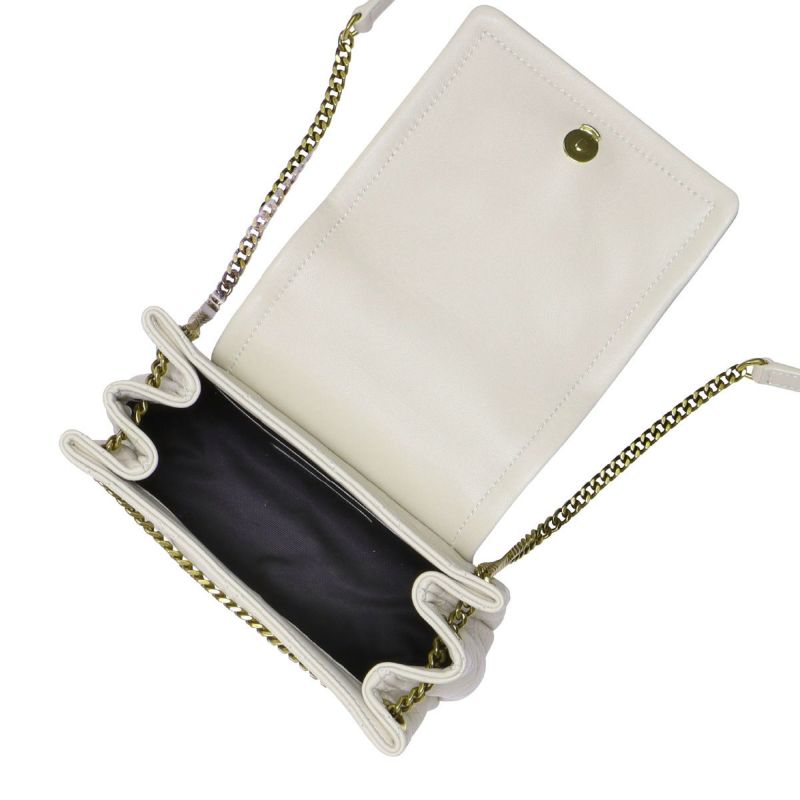 フロントに飾られたお馴染みのカサンドラロゴが、エレガントさを醸し出すショルダーバッグミニ「NOLITA(ノリータ)」★ソフトな質感の上質なラムスキンで仕上げられた本体は、キルティング加工があしらわれており、滑らかな手触りや美しい艶が高級感溢れる佇まい。内側は、小さめの財布や携帯電話、小物類が収納できるスペースに、便利なオープンポケットが1つ備えられた実用的なインテリア◎また、チェーンとレザーで構成されたショルダーが、オシャレなアクセントに!サンローラン パリらしい上品でクラシカルなデザインが、大人の女性を演出してくれるワンランク上のアイテム♪