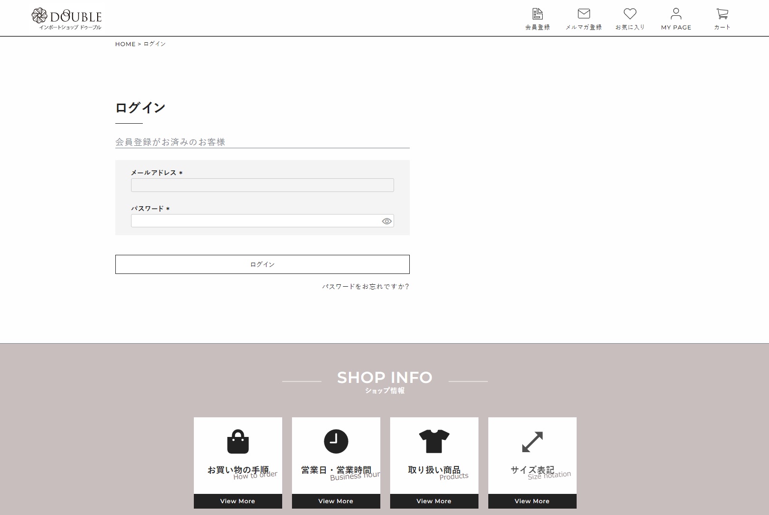 すでに当店をご利用になったことがあり、ユーザー登録をしているお客様は、メールアドレス・パスワードを入力してログインしていただくと、ご住所などのお客様情報が自動で入力されます。