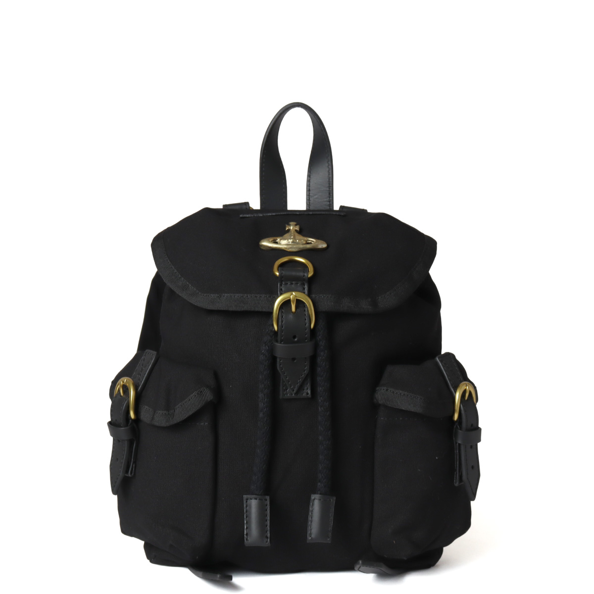 タフなコットンキャンバス生地を使用した、ヴィンテージ感漂うバックパックスモール。使い込むほどに馴染む素材に、アンティーク調のゴールドオーブとベルト使いがクラシックな渋みを添えます。収納力のある立体ポケットを備え、実用性とヴィヴィアンらしい無骨な格好良さを両立した一品です。